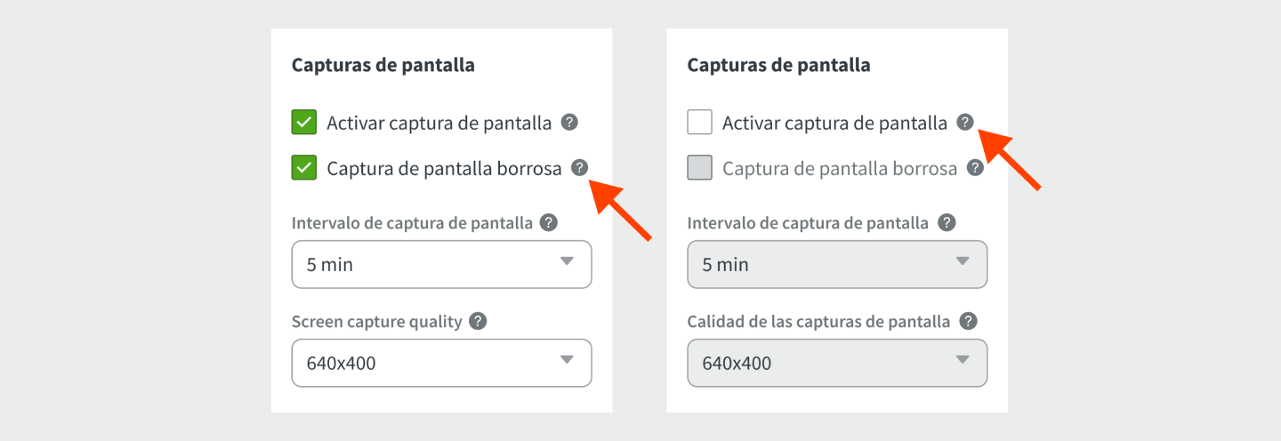 - Difuminar las capturas de pantalla. Elegir difuminar las capturas de pantalla te permitirá ver qué aplicaciones y programas abren tus empleados, pero los detalles más pequeños, como el texto, no serán legibles.