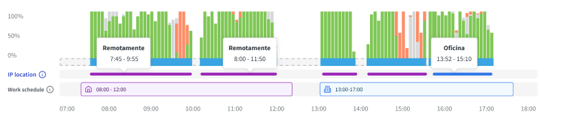 Obtenga información inmediata sobre dónde se realiza el trabajo y haga una idea más clara de los hábitos laborales de su equipo.