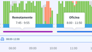 Vea quién está trabajando desde la oficina y quién lo hace de forma remota en tiempo real. Obtenga una visión clara de la ubicación actual de su equipo sin necesidad de registros manuales.
