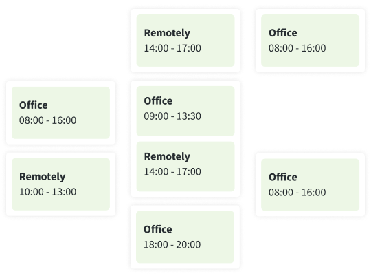 Manage your entire team’s work schedule in one place. Plan shifts, track real-time attendance, and see who’s on vacation or sick leave with the integrated absence calendar. Get a single, clear view of your team’s availability.